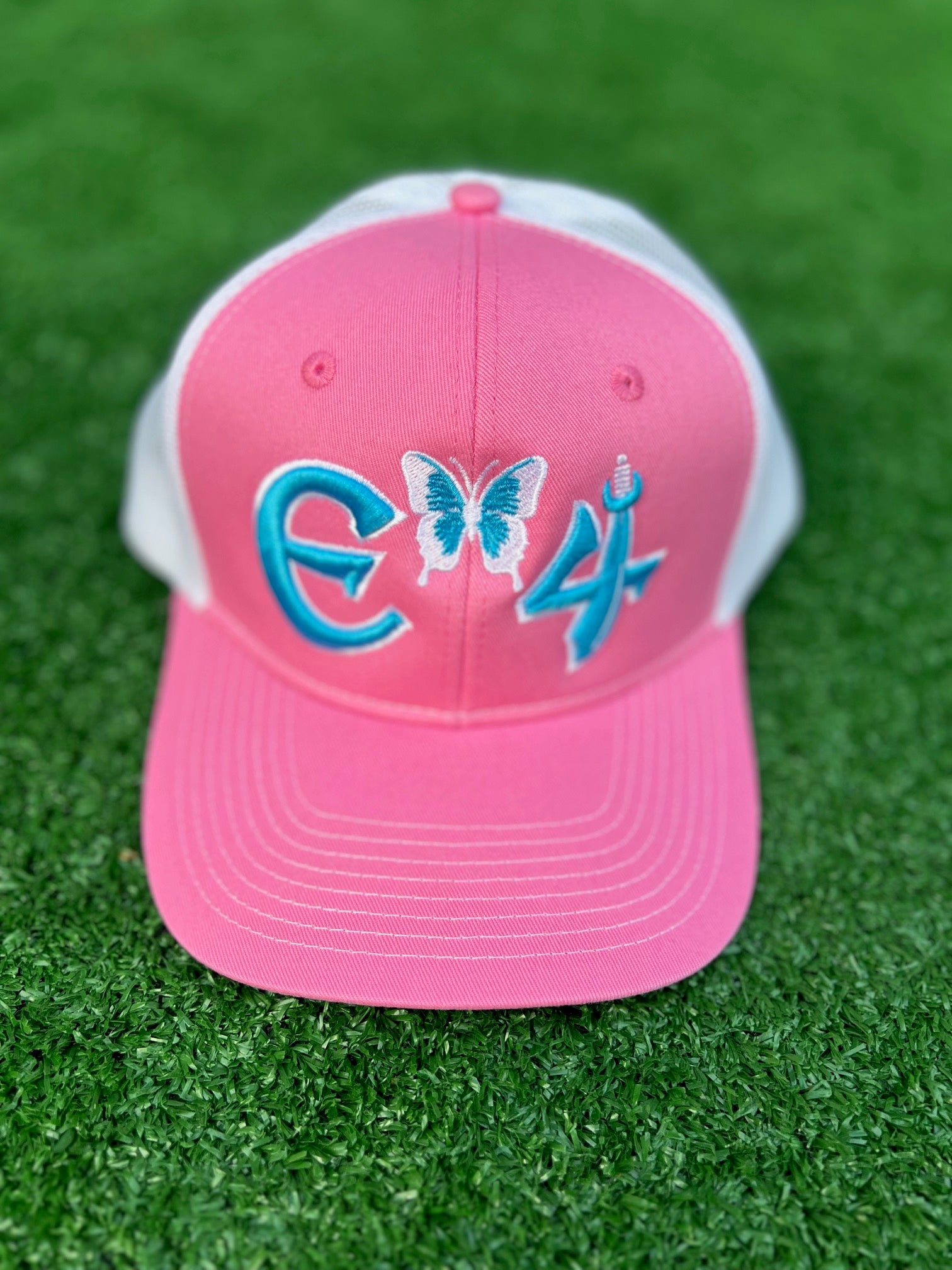 2025 E4 Trucker Hat - True Pink & Sky Blue