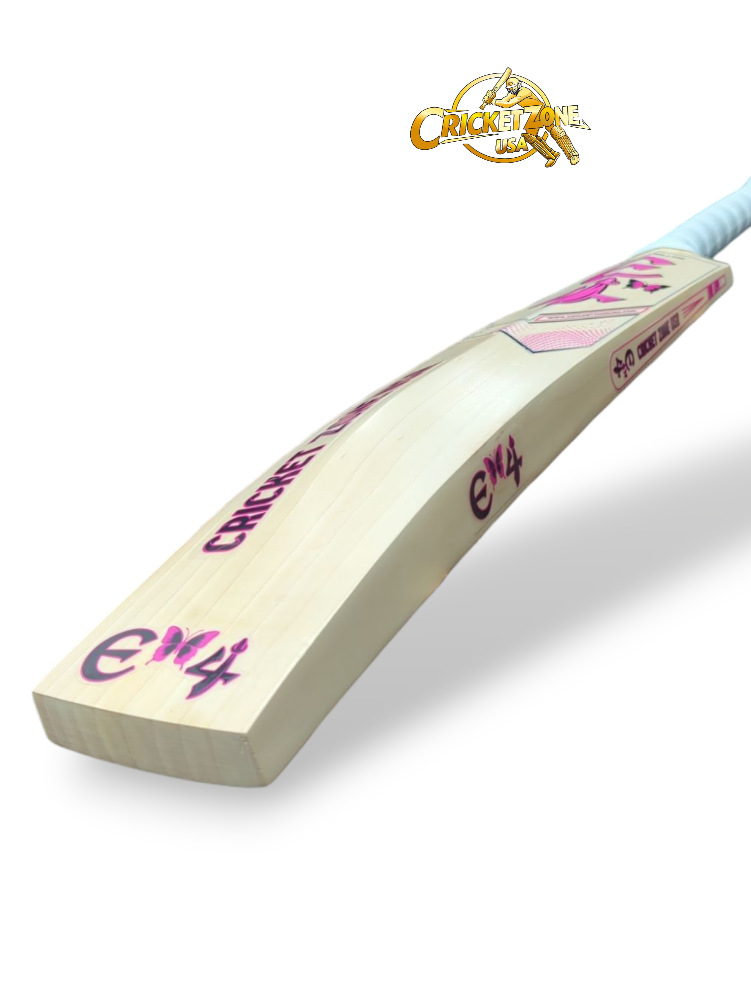 Clear Background with Vibrant Pink Stickers – Showcasing the clean grains and natural beauty of the bat while adding a bold, modern twist